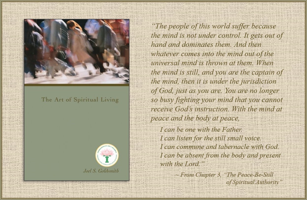 The basis for this chapter is Recording #327A, from the 1960 Chicago Closed Class, with the title “The Two States of Life.” This recording is no longer available on this site. If you subscribe to the Joel Goldsmith Streaming Service, you can listen to it there. To purchase the recording or the transcript from The Infinite Way Office, click/tap here.