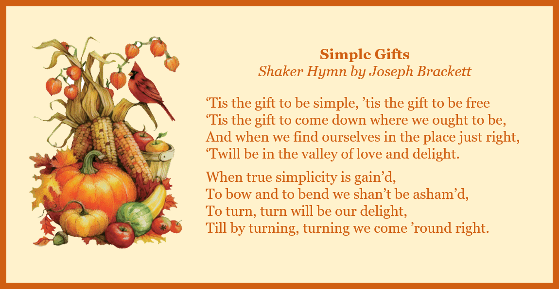 (Recording of “Simple Gifts” graciously provided by Hymns without Words.)